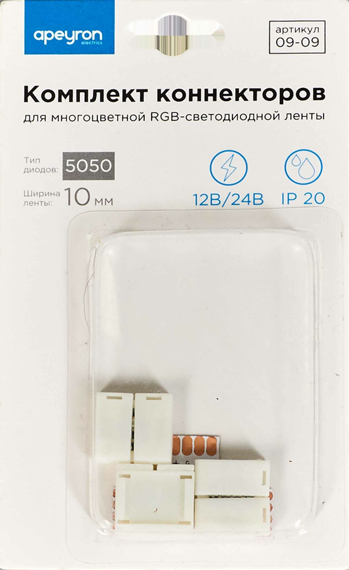 Коннектор T-образный для RGB светодиодной ленты 5050 Apeyron 12/24V 09-09
