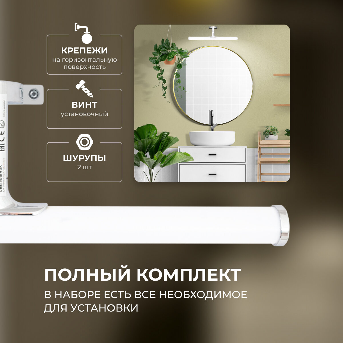 Светодиодный светильник APEYRON Electrics предназначен для подсветки таких объектов, как зеркала, картины, а также зона прихожей. Высота установки 1-4 метра. Имеет элегантный внешний вид, хромированный корпус. Рассеиватель обладает прекрасными характеристиками и обеспечивает ровное освещение. В качестве источника света используются светодиоды типа SMD 2835. Уровень пылевлагозащиты IP44. Цвет свечения: дневной белый. Комплектация: • Светильник • Крепеж на горизонтальную поверхность • Установочный винт • Шурупы, 2 шт.