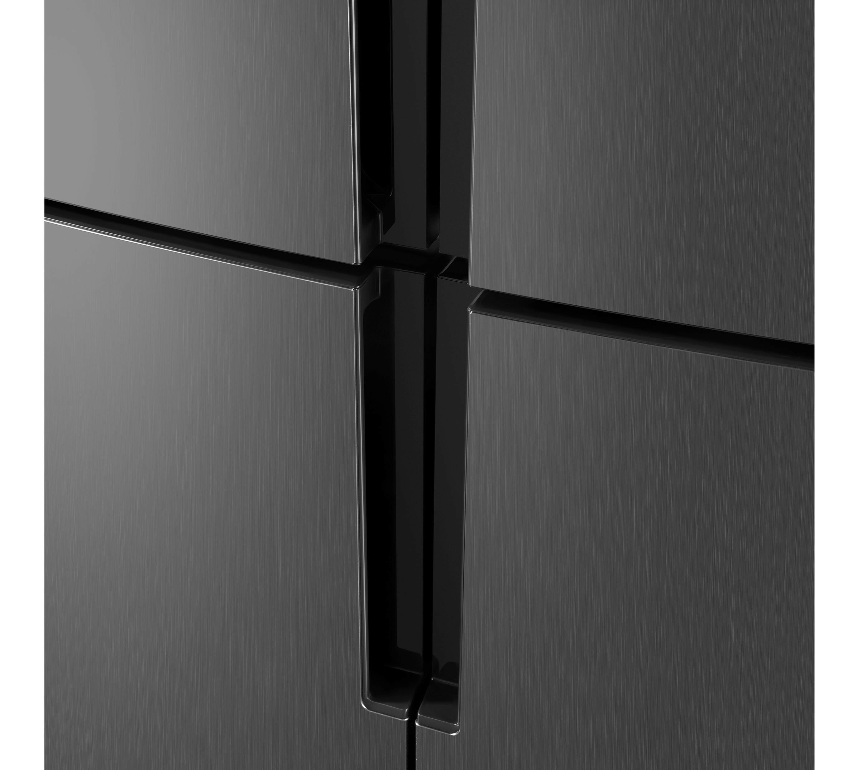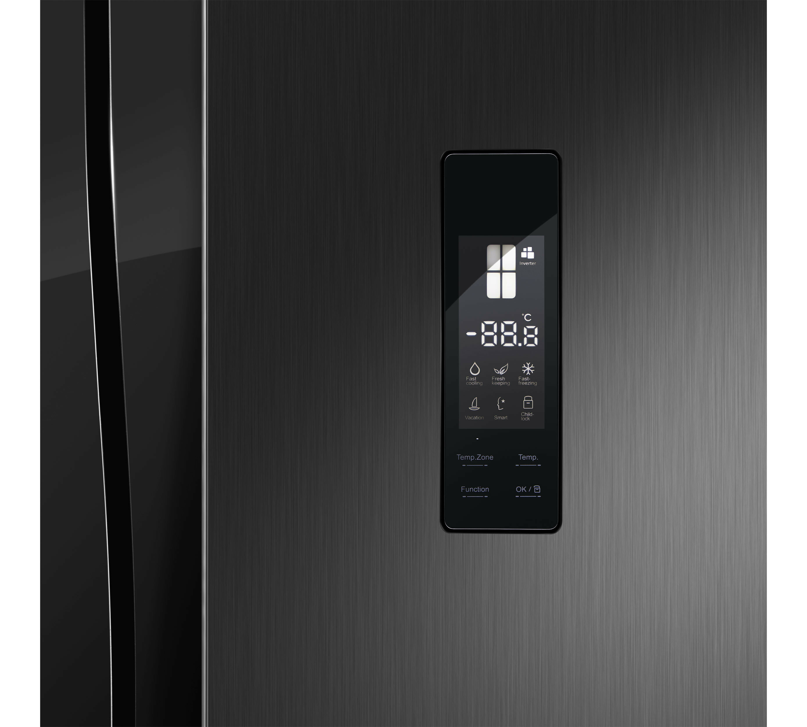 Этот холодильник отличается многодверной конструкцией типа Side-by-Side. Такая компоновка обеспечивает удобный доступ к холодильной и морозильной камерам, позволяя легко организовать их содержимое. Управление осуществляется при помощи электронного интерфейса, что делает процесс настройки температуры простым и интуитивно понятным.