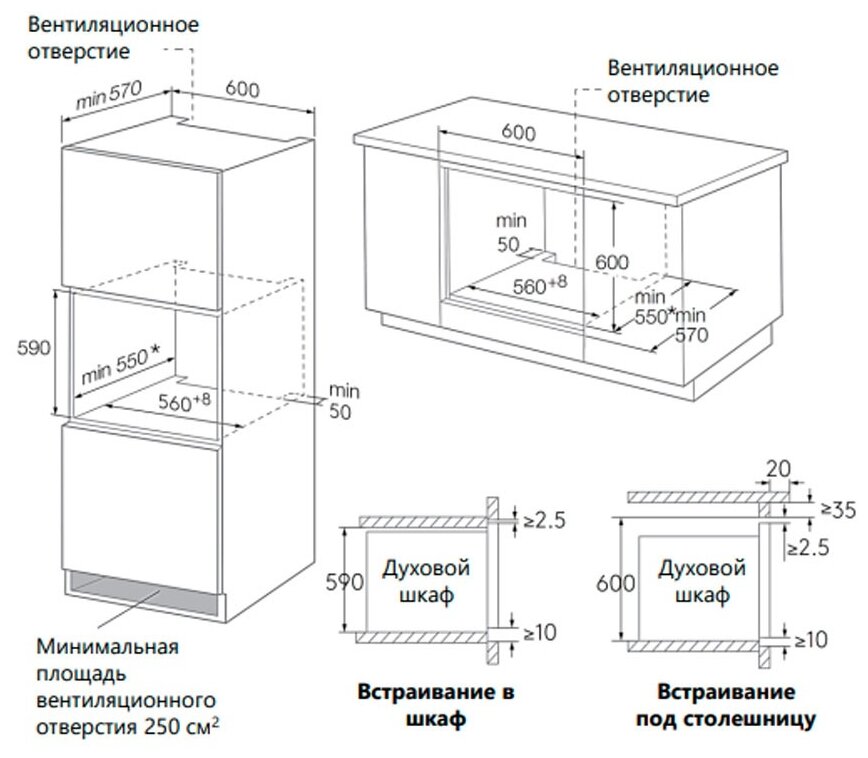 | Размер ниши (В*Ш*Г) | 600*560*550 мм |
