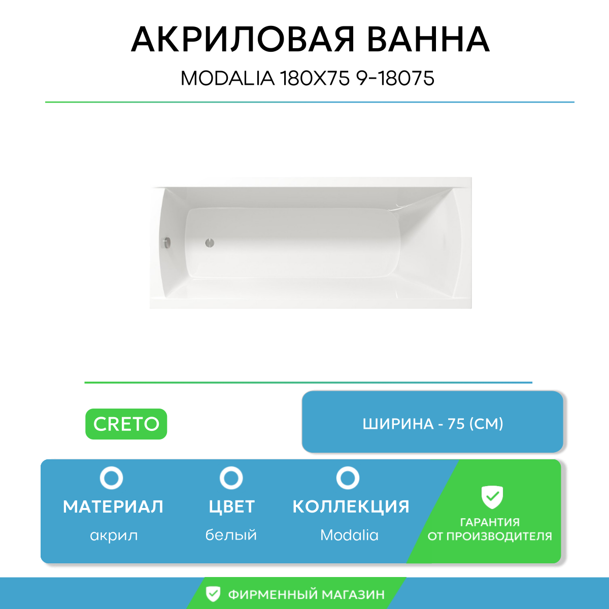 Акриловая ванна Creto Modalia 180х75 9-18075