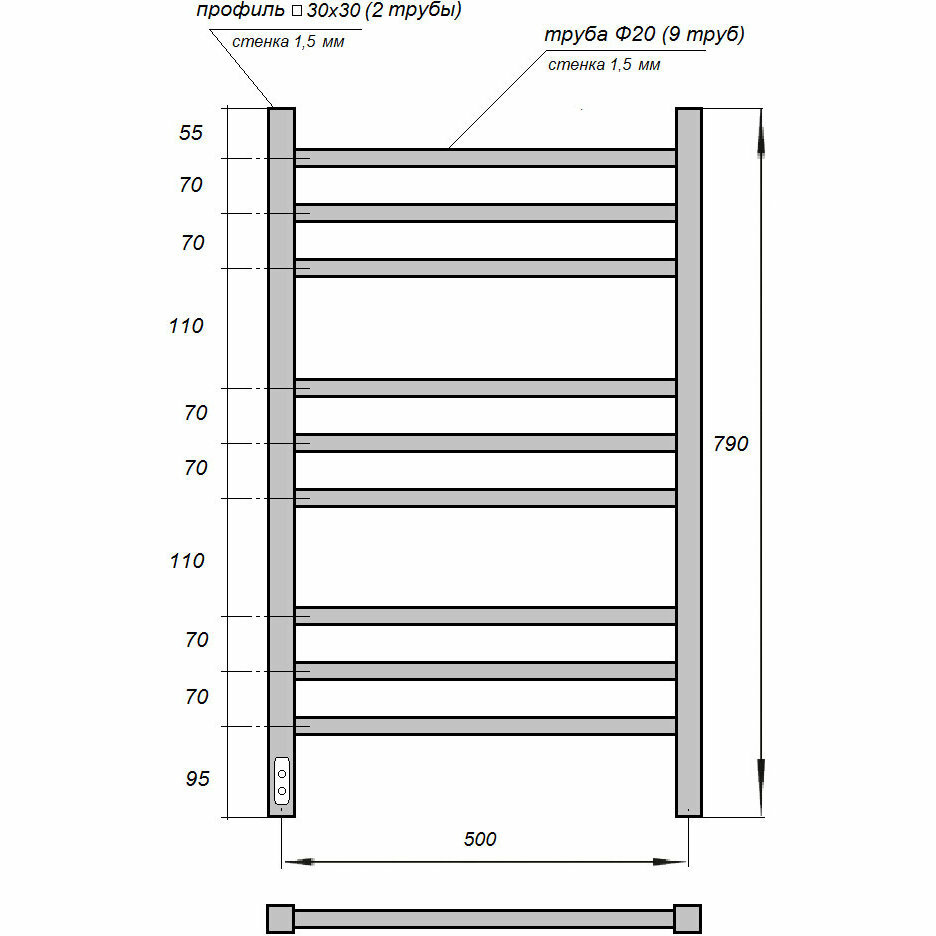 Электрический полотенцесушитель Point П9 50х80 П9 PN70758W левый (размер: 79x53 см)
