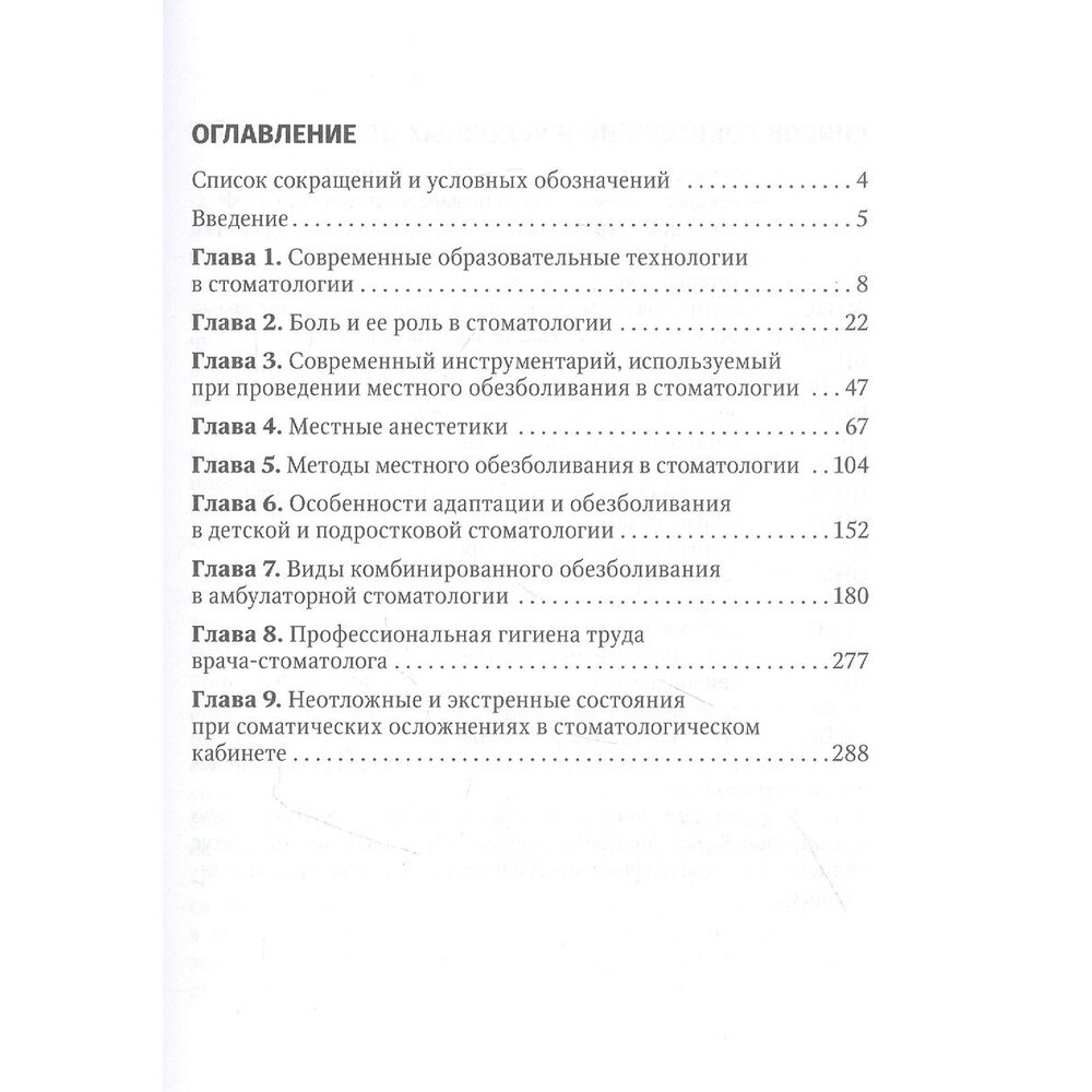 В руководстве рассмотрены современные аспекты обезболивания в стоматологии при проведении лечебных мероприятий у детей и взрослых в амбулаторных условиях. Освещены основные направления современных технологий местного и комбинированного обезболивания, включая рекомендации по их использованию практикующими врачами. Оригинальный иллюстративный материал позволит освоить эффективные и безопасные способы и приемы местной анестезии с применением карпульной технологии, подтвержденные богатым клиническим и научным опытом авторов. В работе даны основы экстренной и неотложной медицинской помощи в случае ее необходимости во время стоматологического приема.