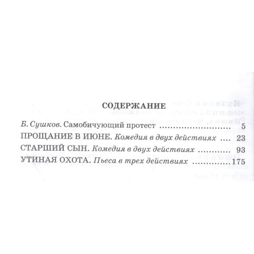 В сборник произведений известного драматурга А. Вампилова вошли пьесы "Прощание в июне", "Старший сын" "Утиная охота", основная тема которых - способность живой души побороть рутину жизни, сопротивляться злу и людской пошлости. Для старшего школьного возраста.