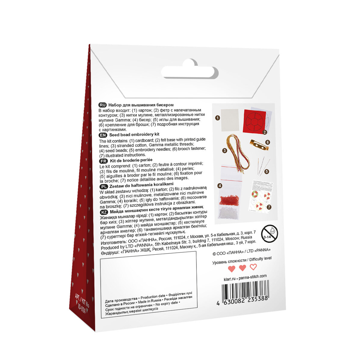 | В набор входит | Бисер, Фетр, Фетр с напечатанным контуром, Заготовка для броши, Заготовка из картона |