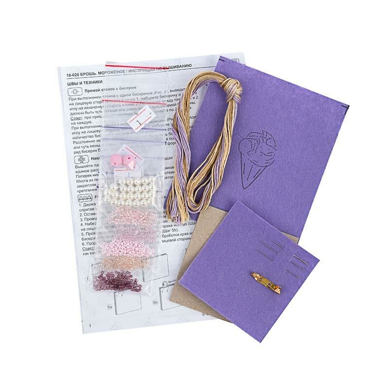 Набор для вышивания гладью и бисером 10-026 Брошь. Мороженое ТМ Klart – это прекрасный выбор для тех, кто увлечен рукоделием и творчеством. Размер работы 3.5х5 см. В составе все необходимое для опытных и начинающих мастериц: фетр с напечатанным контуром, фетр, заготовка для броши, заготовка из картона, бисер 5 цветов, бусины, хлопковые нитки мулине Gamma 3 цвета, игла для вышивания гладью, тонкая игла для бисера, подробная инструкция с пошаговыми иллюстрациями. Пяльцы для вышивания не понадобятся. Предоставляем схему в PDF формате по запросу на почту указанную на обороте упаковки.Этот подарочный набор внесет новый смысл в ваше хобби. Товары для рукоделия и творчества от бренда Кларт позволяют окунуться в мир вышивки, сделай своими руками уникальный аксессуар. Вышивка крестиком, гладью и бисером всегда было популярным хобби, поможет провести досуг вашей дочке, любимой маме, племяннице, внучке. Набор для создания броши станет прекрасным подарком друзьям на новоселье, девочке в день рождения или новогодний уникальный подарок коллеге, бабушке, тете, сестре и подруге. Творчество помогает справляться со стрессом и провести время с пользой для души. Интерьерная картина это прекрасное украшение для комнаты или она может стать оригинальным подарком к 8 марта. Отличный подарок без повода учителю, для дня рождения, детям в школу на 1 сентября, девочке и мальчику на 5, 7 и 10 лет или подруге на др. Этот творческий процесс подойдет как детям, так и взрослым женщинам.