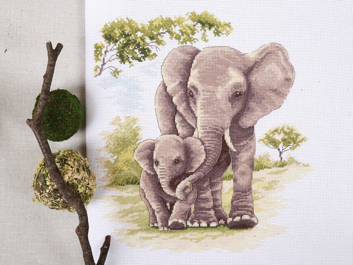 J-7208 Мать и дитя. Слон PANNA (размер: 25,5х29 см)