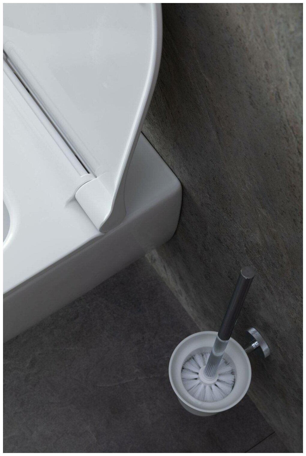 Ершик Allen Brau Priority настенный. Материал: керамика, латунь, сталь. Цвет: белый, браш.никель. Размеры: ширина 11см. Глубина 1.42см. Высота 38см