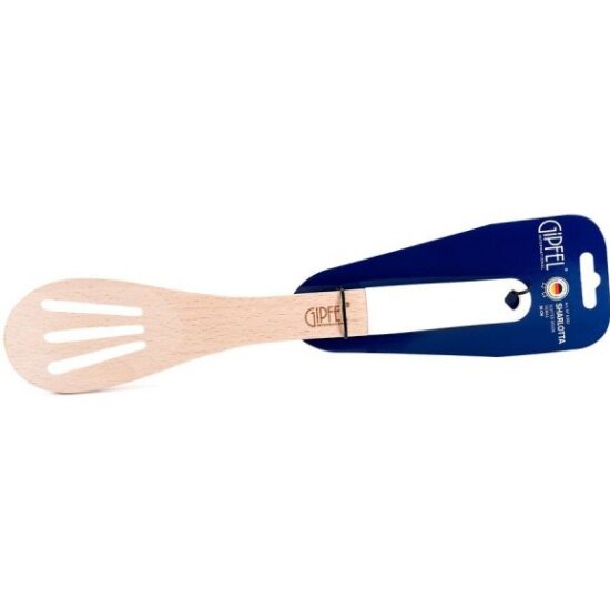 Новая ложка из натурального бука с характерным отверстием и силиконовой ручкой. Древесина бука хорошо подходит для обработки продуктов и одновременно не оказывает жесткого механического воздействия на посуду, которое может привести к ее порче. Такая ложка будет уместна и на кухне, и в гостиной, где соберутся на обед или ужин ваши близкие и или друзья.