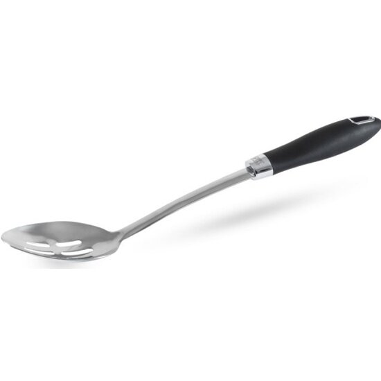 Шумовка GIPFEL MONTEGO 9312 длиной 36см. Рабочая поверхность размером 7х10,5см. Материал: нержавеющая сталь, пластик, термопластичная резина, цинковый сплав.