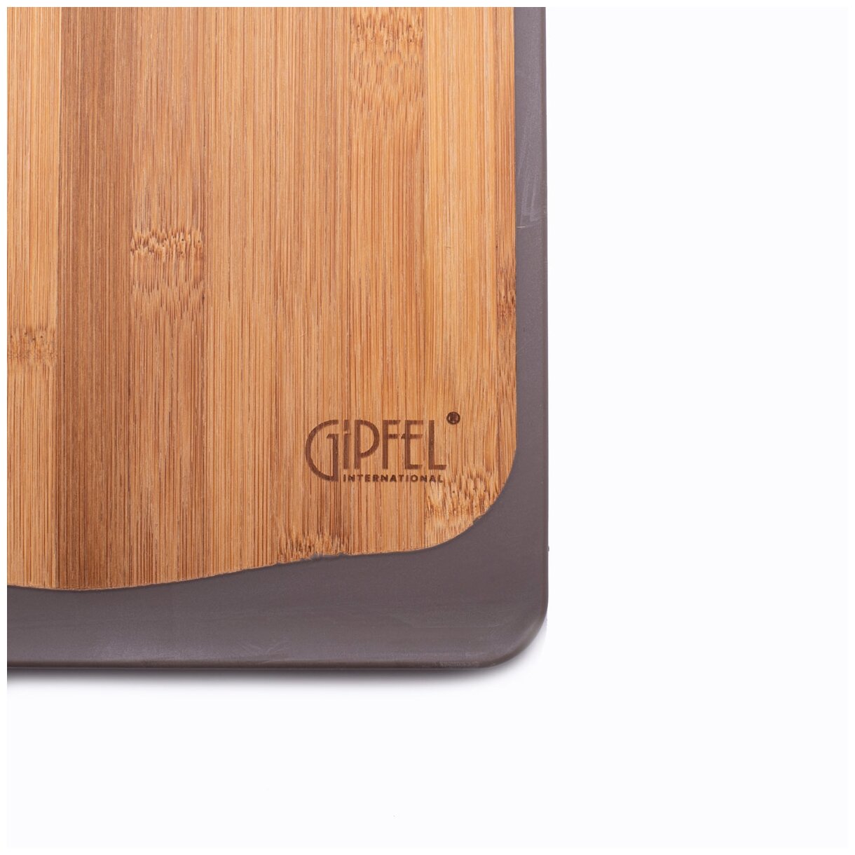 Доска разделочная GIPFEL ECO 3254. Размер доски 33х23х1,8см. Доска имеет две стороны из бамбука и пластика. Края сделаны из термопластичной резины, что делает доску устойчивой на любой поверхности.