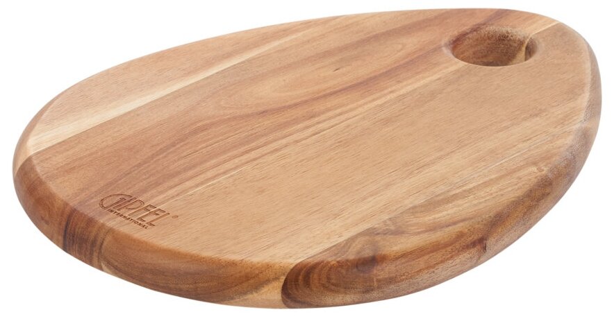 Доска разделочная GIPFEL MUXIA 50946. Размер доски 26х20х1,8см. Доска сделана из акации светло-коричневого цвета. Деревянная доска придется по душе хозяйкам, ценящим экологичность и натуральность кухонных аксессуаров. Доска вырезана в виде капли и имеет отверстие для подвешивания. Доску также можно использовать, как сервировочную: подавать на ней нарезанный сыр, канапе или другие закуски.