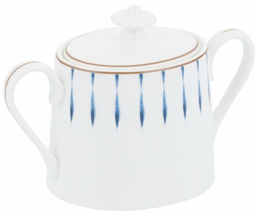 Сервиз чайный Gipfel AZZURRO 42199. В наборе 15 предметов на 6 персон: чайник заварочный 1200 мл, сахарница 350 мл, молочник 200 мл, 6 чашек объемом 250 мл, 6 блюдец диаметром 16,5 см. Сервиз сделан из белого костяного фарфора с золотой каймой и голубыми акварельными штрихами по краю.