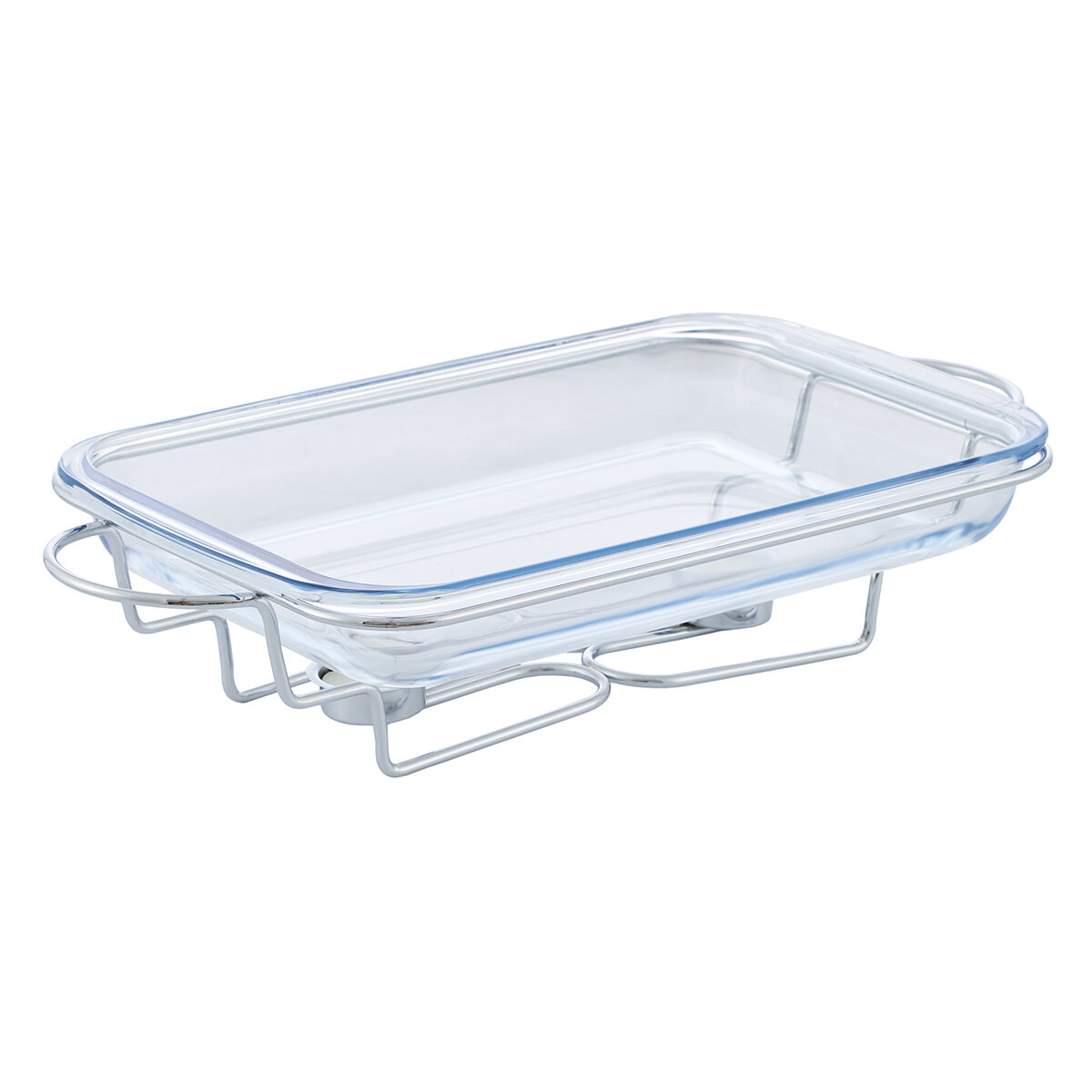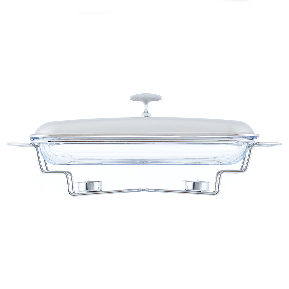 Мармит прямоугольный GIPFEL MACKENZIE 5032. Размер 39,5x23,5x5см. Стеклянный контейнер вмещает 2,6л продукта. Каркас оборудован двумя держателями для свечей. Контейнер из термостойкого стекла можно использовать в духовом шкафу и мыть в посудомоечной машине. Каркас сделан из цинкового сплава и нержавеющей стали. Высота с каркасом 12 см, длина 39,5 см, длина с ручками - 49,5 см.