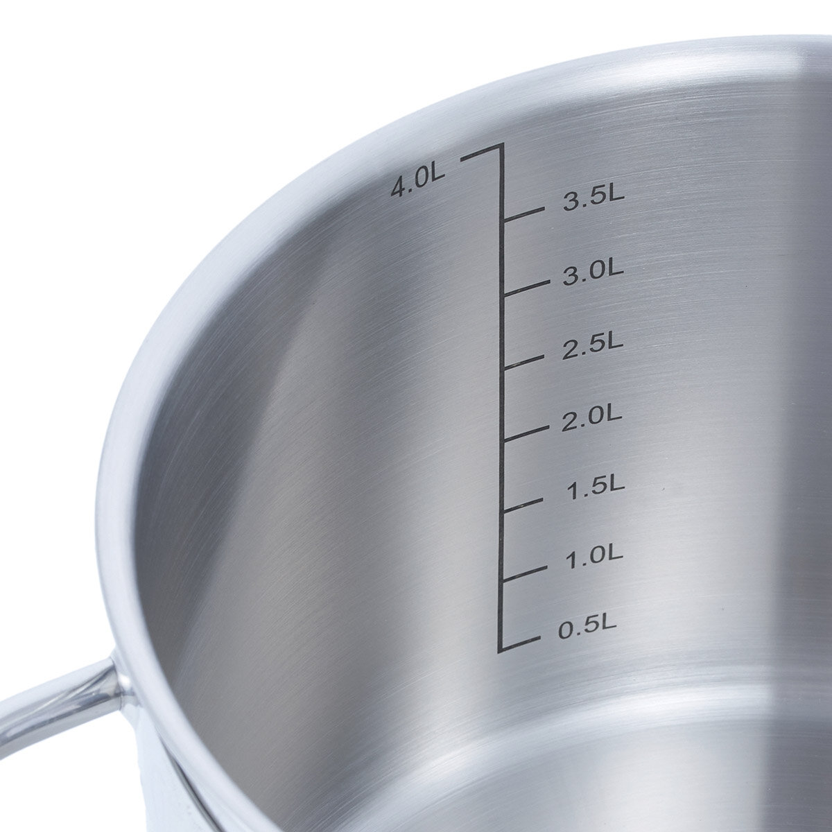 В данный набор посуды входят 3 кастрюли из нержавеющей стали марки 18/10 объемом 2, 3 и 4 л, каждая из которых оснащена стеклянной крышкой, а также ковш объемом 1,5 л. Каждый из предметов набора оснащен капсульным дном с медной вставкой, что значительно упрощает готовку – посуда нагревается быстрее и равномернее. Отметим, что весь набор можно использовать на плитах любого типа, включая индукционные.