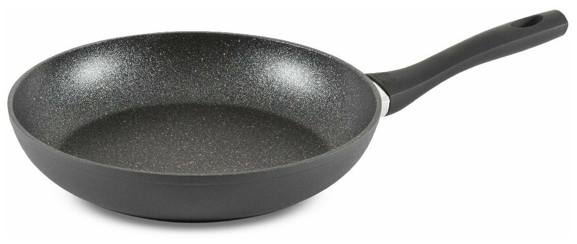 Самая большая сковорода из серии BUFFALO – диаметр ее дна составляет 28 см, а высота бортов – 5,5 см. Как и другие модели серии, оснащена премиальным антипригарным покрытием Teflon Profile и бакелитовой ручкой с покрытием Soft-touch. Имеет довольно толстый корпус – толщина дна 4,5 мм, а стенок – 2 мм.