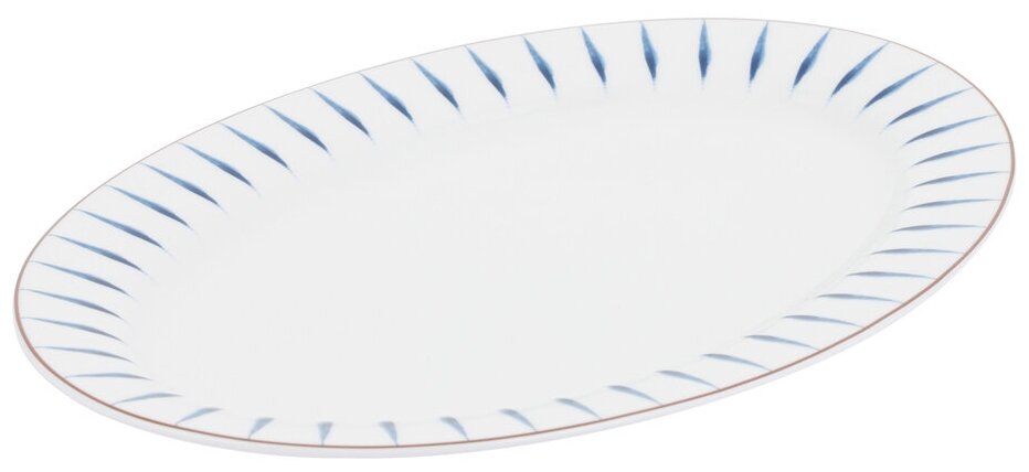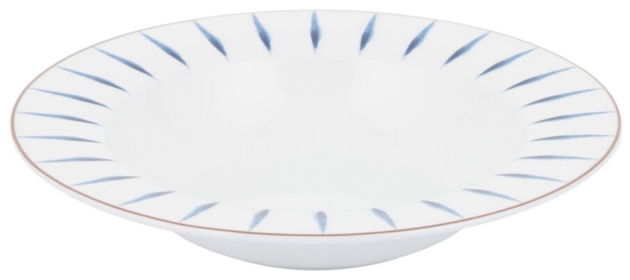 Сервиз столовый Gipfel AZZURRO 42194 из 21 предмета. Сервиз рассчитан на 6 персон. В наборе: 6 тарелок обеденных 26,5 см, 6 тарелок закусочных 21,5 см, 6 тарелок суповых 21 см, 2 овальных блюда 35,5 см, салатник 23см. Сервиз сделан из белого костяного фарфора с золотой каймой и голубыми акварельными штрихами по краю.
