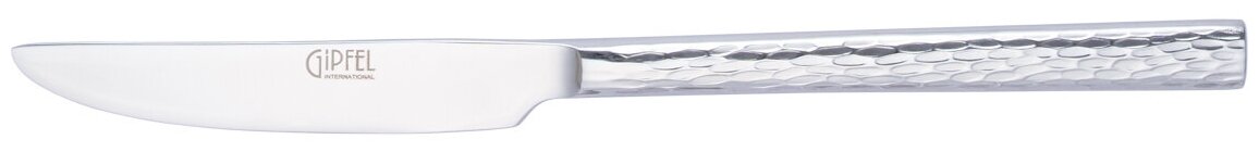 Столовый нож Gipfel Rivoli выгодно выделяется на фоне аналогичных моделей оригинальной рельефной рукоятью. Она не только исключает выскальзывание приборов из ладони, но и добавляет изысканности классическому дизайну ножа с яркой зеркальной полировкой.