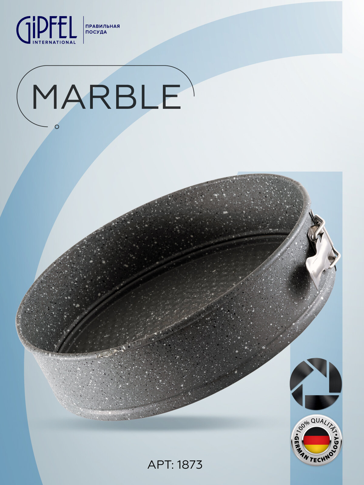 1873 GIPFEL Форма для выпечки 24x24x7см круглая с антипригарным мраморным покрытием. Материал: Углеродистая стальВнимание: во избежание порчи товара, после использования, изделие рекомендуется насухо протереть.