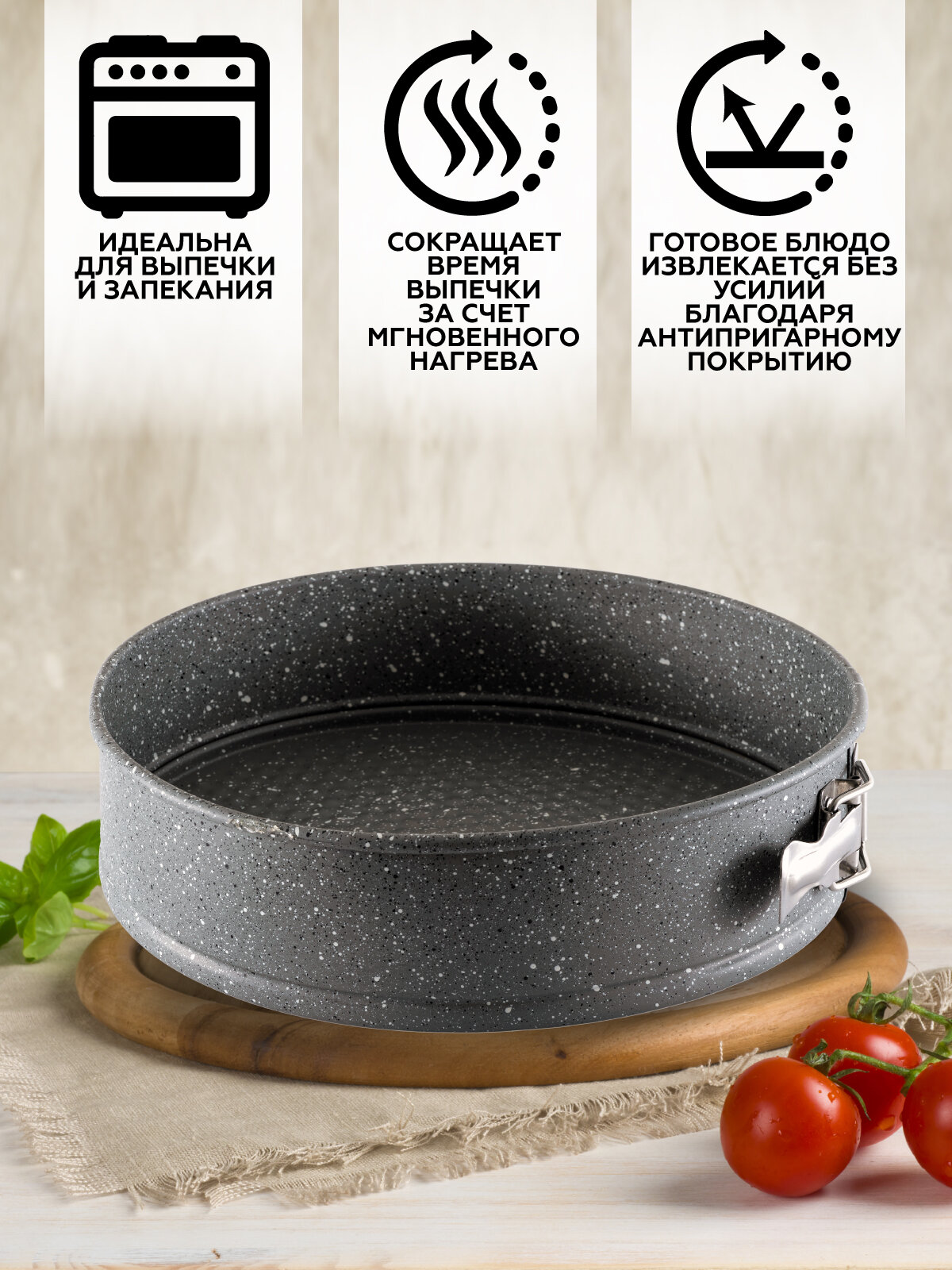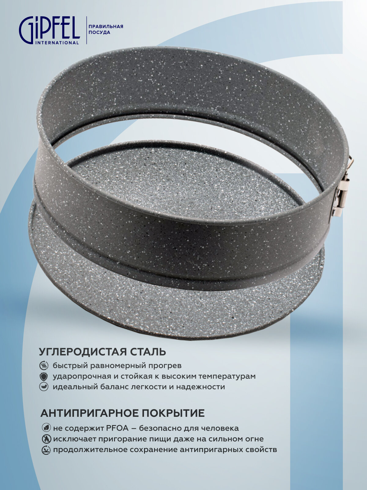 Модель: Форма для выпечки Gipfel Marble разъемная круглая с антипригарным мраморным покрытием 24x24x7 см