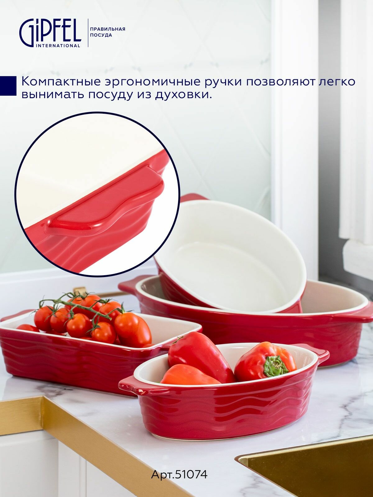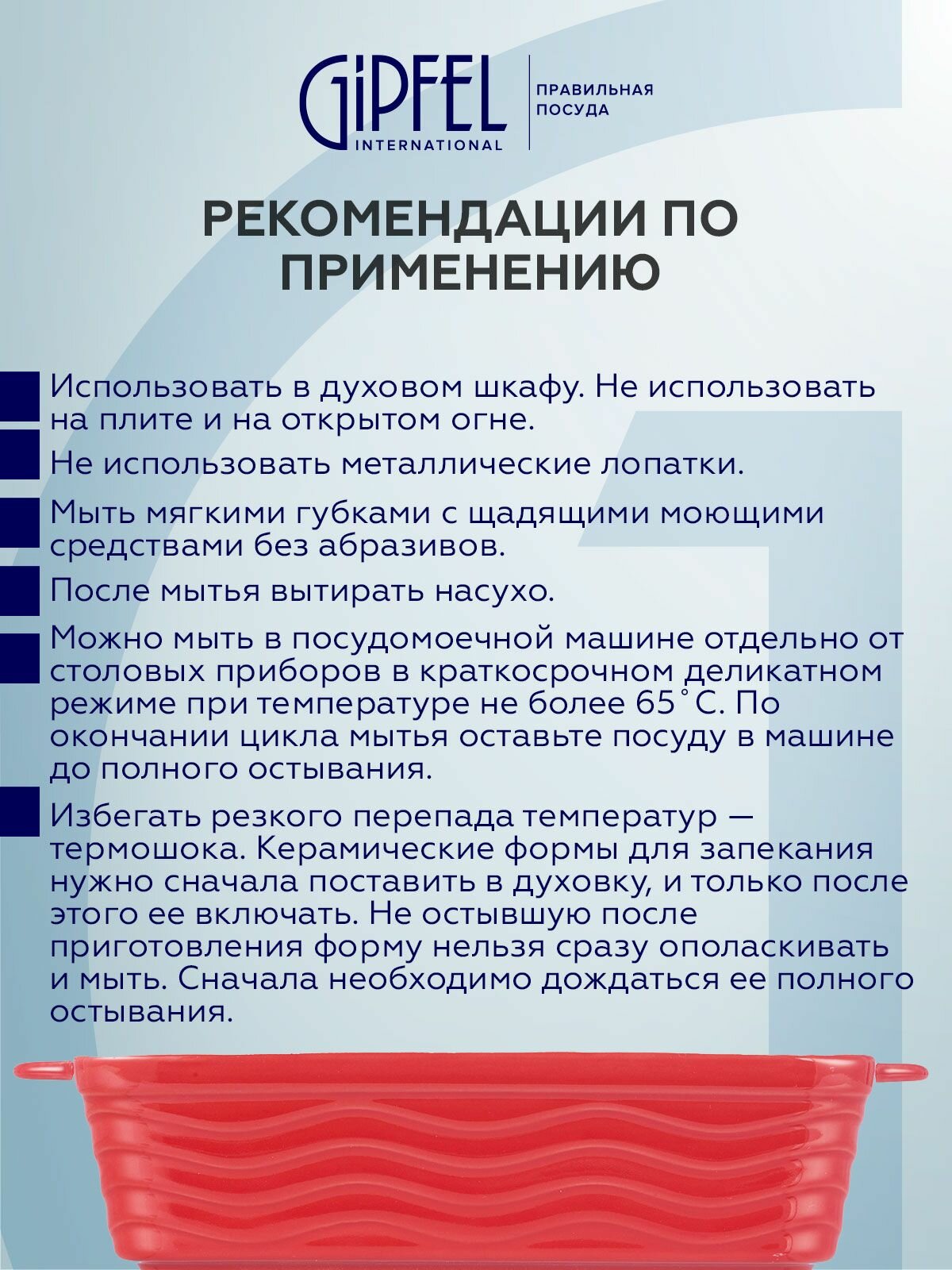 Часто спрашивают: чем керамическая форма отличается от металлической? Керамика не окисляется, не впитывает запахи, лучше сохраняет тепло и обеспечивает натуральный вкус блюд. Форма Gipfel Rosso легко очищается — ее можно мыть в посудомоечной машине, а насыщенный красный цвет идеально впишется в современный интерьер кухни. Для подарка или ежедневного использования — это оптимальный выбор для тех, кто ценит стиль и практичность.