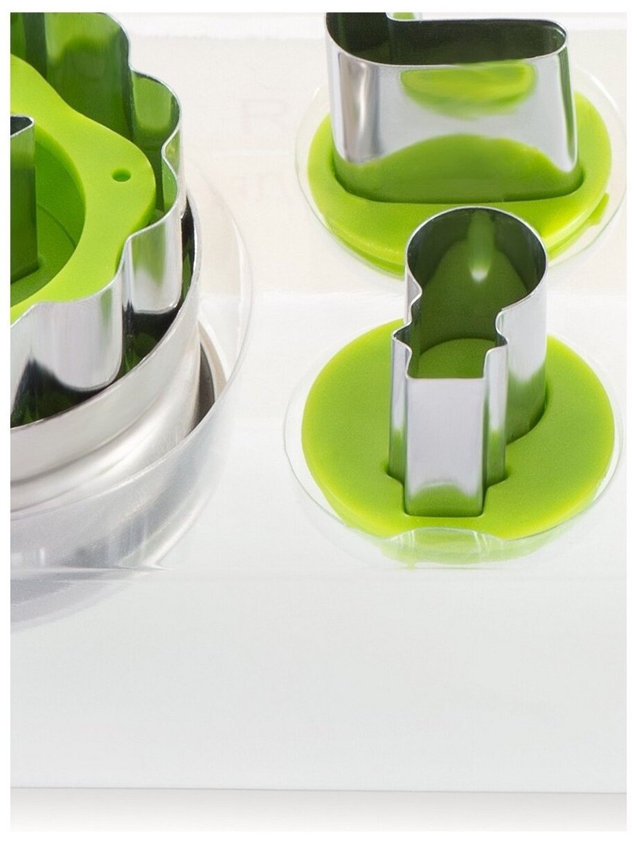 Набор кулинарный для нарезания теста GIPFEL 0366. Набор состоит из 5 форм разного размера. Набор пригодится при выпечке новогоднего печенья: фигурки елочки, звезды, снеговика, карамельной трости создадут настроение и украсят праздничный стол. Вырубки сделаны из нержавеющей стали с пластиковыми элементами.