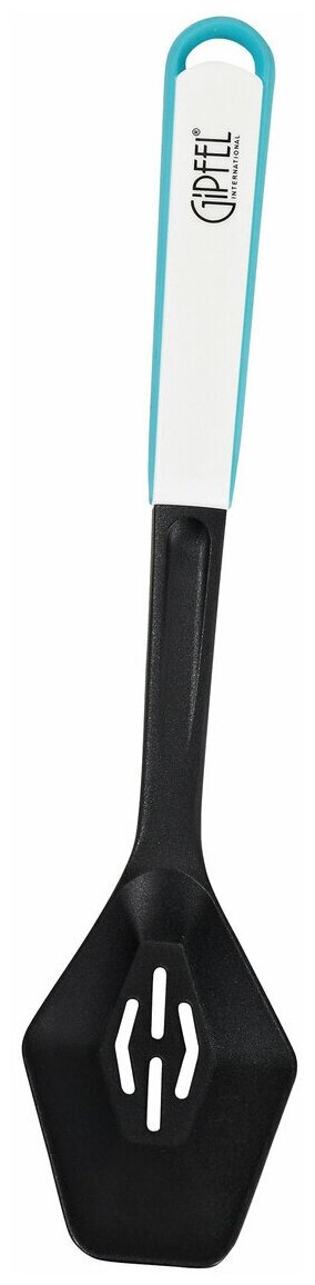 Шумовка Gipfel Mintaka 6483. Размер 32,5х6,5 см. Выполнена из пластика с нейлоновой рабочей поверхностью. Оригинальный дизайн с ромбовидными очертаниями и нарочито угловатыми формами сразу притягивает взгляд к аксессуару. Шумовку можно использовать с посудой, оснащенной антипригарным покрытием.