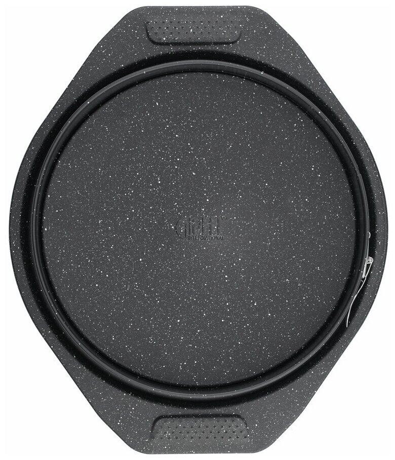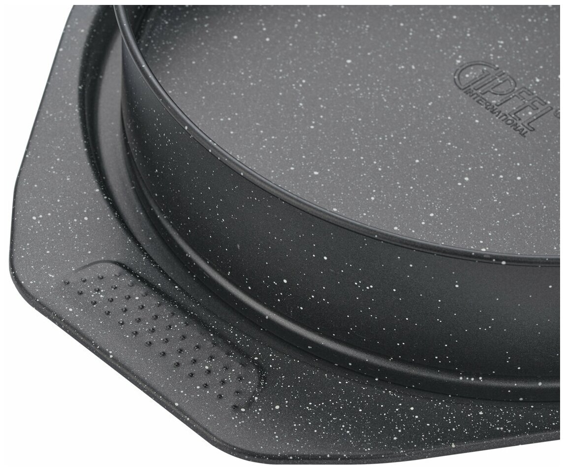 Форма для выпечки GIPFEL MARBLE BLACK 50972 круглая разъемная на подносе 26х5,5 см с антипригарным покрытием. Материал: углеродистая сталь.