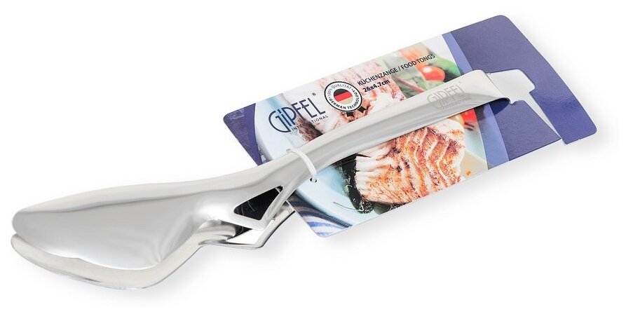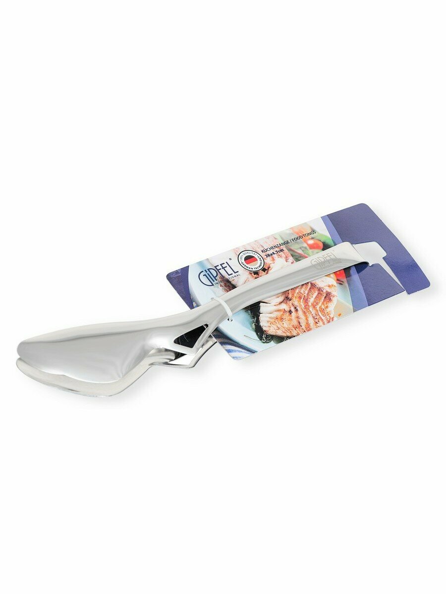 Щипцы сервировочные универсальные GIPFEL 5725. Щипцами удобно переворачивать мясные стейки, жареную рыбу, перемешивать салат. Длина щипцов 26см, ширина 4,7см. Щипцы сделаны из стойкой к коррозии нержавеющей стали.