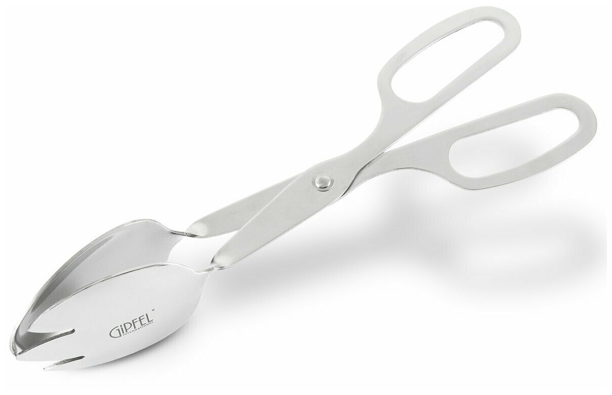 Щипцы сервировочные Gipfel Benita 2066. Щипцами удобно подавать мясные стейки, жареную рыбу, бутерброды. С одной стороны щипцы имеют форму ложки, с другой – широкой вилки, благодаря чему пища держится крепко. Длина щипцов 26см. Щипцы сделаны из нержавеющей стали.