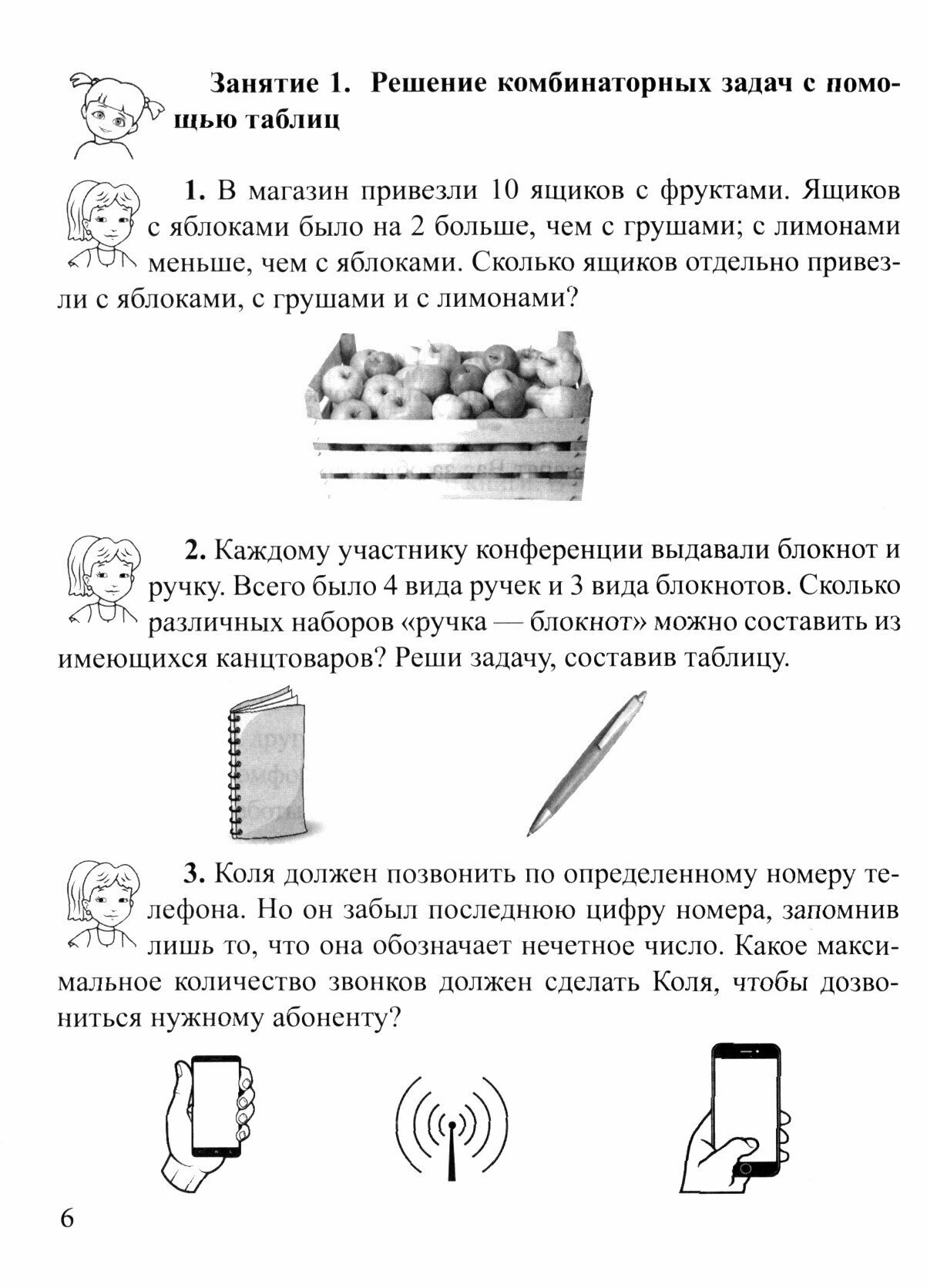 Все комбинаторные задачи предлагаются в четырех книгах (1-4 выпуски). Материал расположен по мере его усложнения. Ко всем задачам даны ответы.