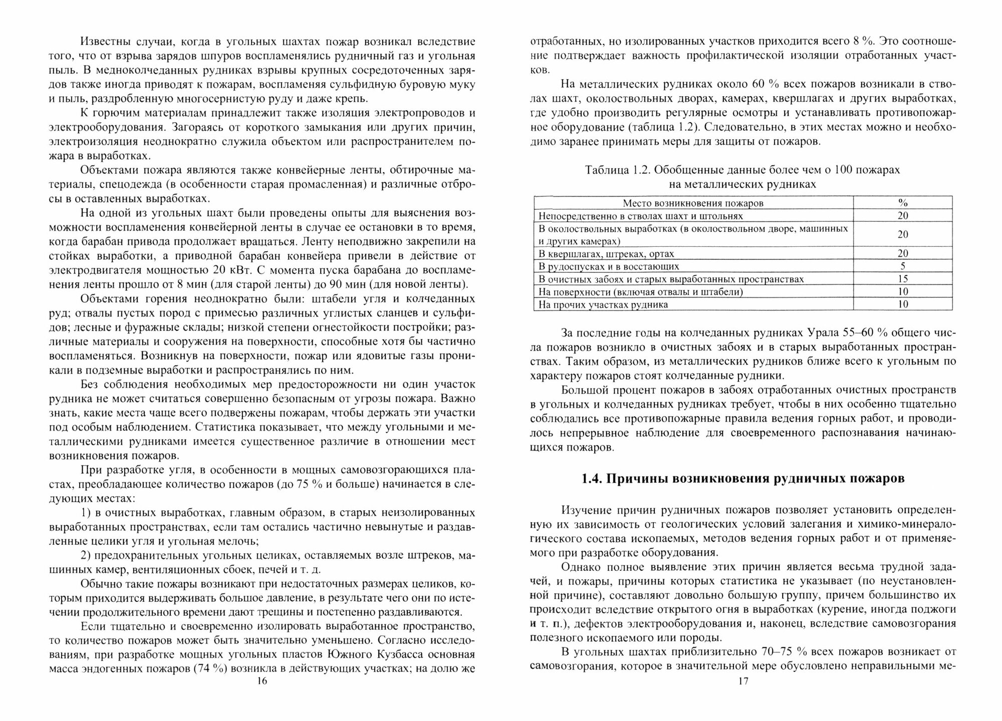 Приведены причины и условия возникновения эндогенных и экзогенных пожаров на горных предприятиях, основы процессов окисления и самовозгорания ископаемых углей и руд. Рассмотрено влияние физико-химических параметров ископаемого, а также горно-геологических и горно-технических условий залегания и разработки месторождений на развитие эндогенных пожаров. Приведены особенности развития экзогенных пожаров в выработках, оборудованных ленточными конвейерами, и при горении шахтной горючей крепи. Приведены основные методы распознавания и предотвращения рудничных пожаров, способы и средства их обнаружения и тушения.