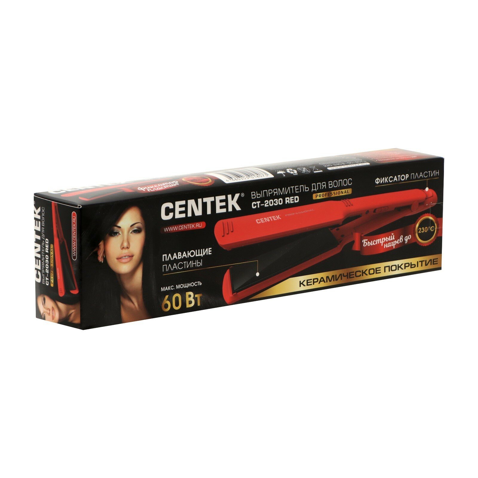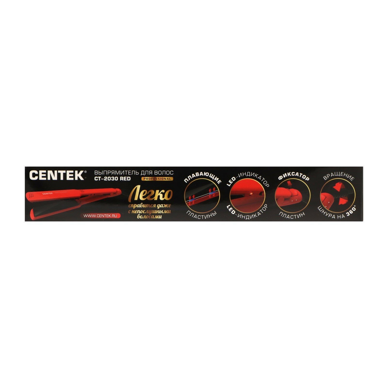Выпрямитель для волос Centek CT-2030 60Вт красный 12*4.4см CT-2030 Red