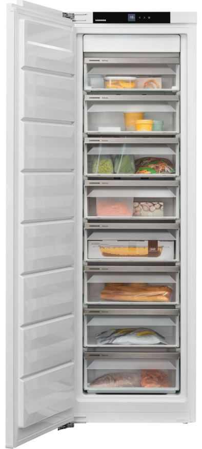 Встраиваемая морозильная камера с функцией NoFrost Liebherr серии Pure высотой 177 см имеет полезный объем 209 литров. Сенсорный экран позволяет легко и интуитивно управлять вашим устройством Liebherr, все функции наглядно расположены на экране. Система NoFrost означает: никакого больше утомительного и продолжительного размораживания морозильного отделения, больше времени для других дел. Встроенные направляющие всегда обеспечивают удобный доступ к Вашим продуктам при открытых и загруженных выдвижных контейнерах. Блокировка экрана предотвращает непреднамеренное изменение настроек вашего холодильника. Сменный дверной уплотнитель можно снять несколькими простыми действиями, и так же легко вставить новый уплотнитель. Тип крепления фасада Door on Door (жесткое) .