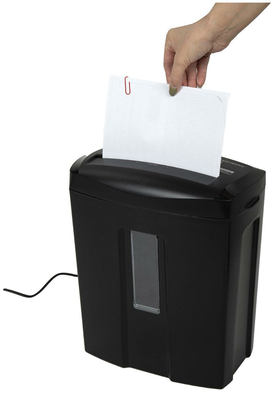 | Возможности уничтожения | бумаги А4 (70 г/м2), бумаги А4 (80 г/м2), пластиковых карт, скоб, скрепок |