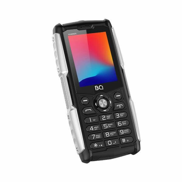 BQ 2449 Hammer - кнопочный телефон из линейки защищенных аппаратов. Модель выполнена в прочном корпусе с оригинальным технологичным дизайном. Телефон имеет цветной TN-дисплей 2.4” с ярким и четким изображением и фотокамеру 0,8 МП. Акуммулятор емкостью 4000 мАч с функцией Powerbank увеличивает время автономной работы самого телефона и позволит вам заряжать от него любые сторонние устройства с помощью USB-кабеля. Мобильный телефон BQ 2449 Hammer с 2 SIM-картами поддерживает стандарты связи GSM 850/900/1800/1900 МГц и Bluetooth, а также оборудован слотом для карты памяти Micro SD до 16 ГБ, диктофоном, фонариком и FM-радио.