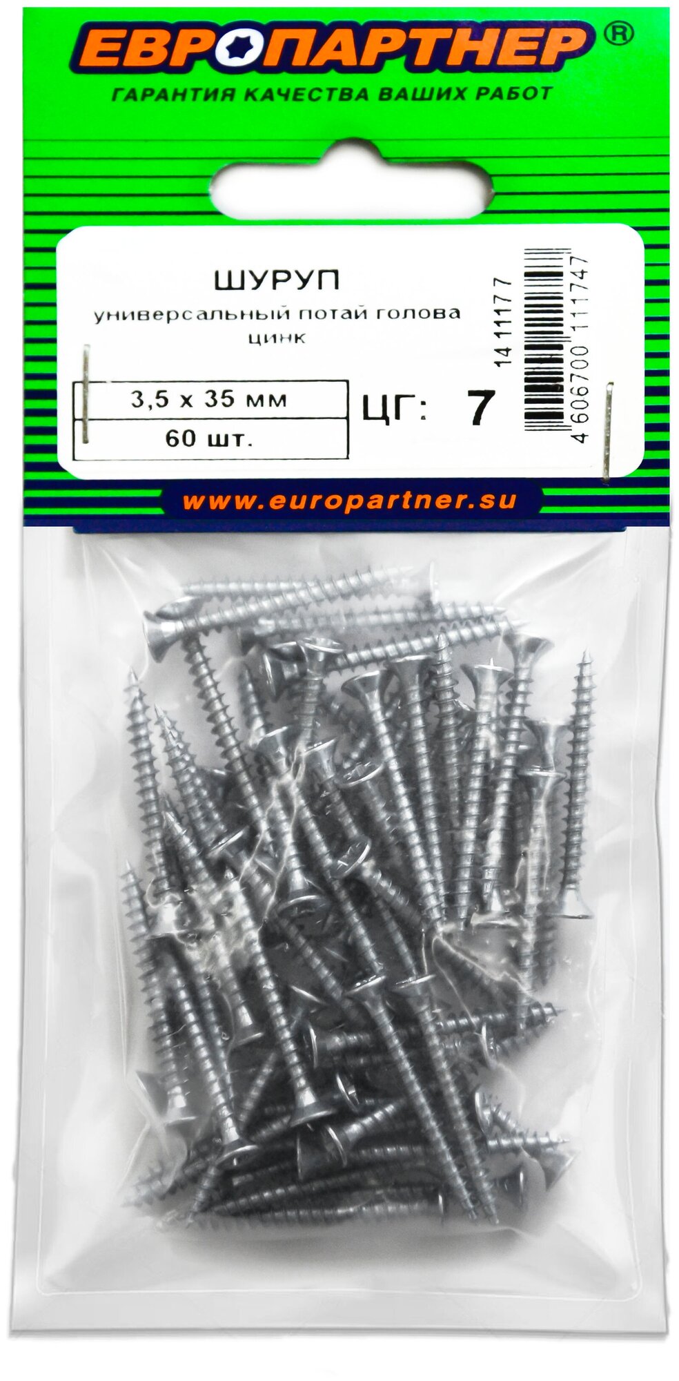 саморез универсальный 35х35мм потайная головка 60шт Европартнер (14 1117 7)