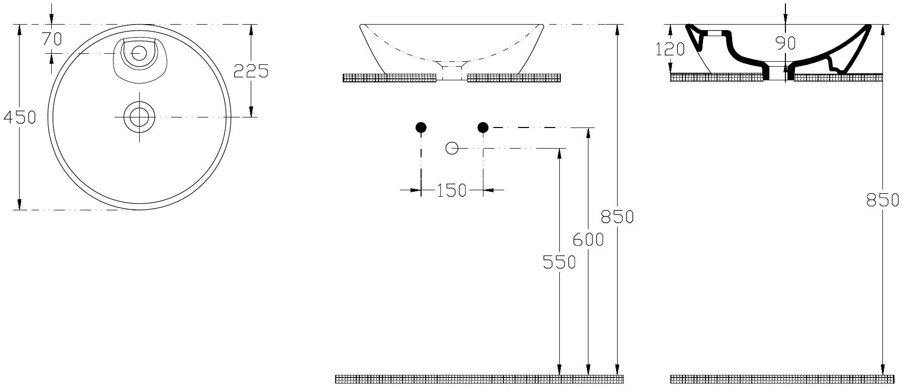| Форма раковины | круглая |