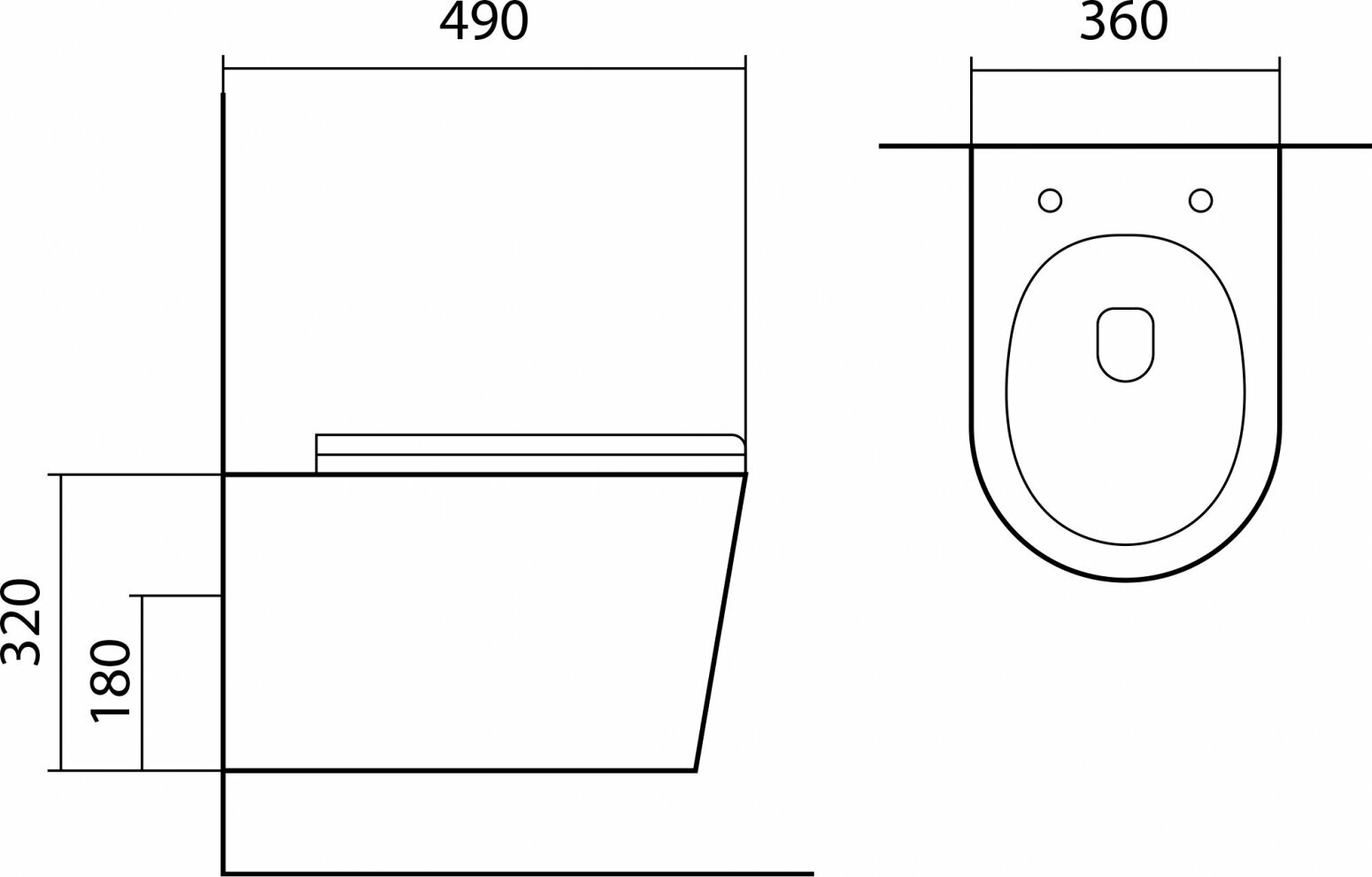 Унитаз подвесной Вега безободковый 490*360*320, тонкое сиденье с механизмом плавного закрывания Soft Close, крепеж
