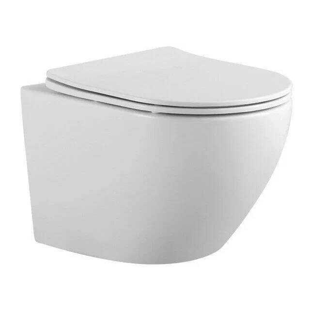 Унитаз подвесной AQ1901-00 Европа безободковый 525*360*320 мм, тонкое сиденье с механизмом плавного закрывания, крепеж.