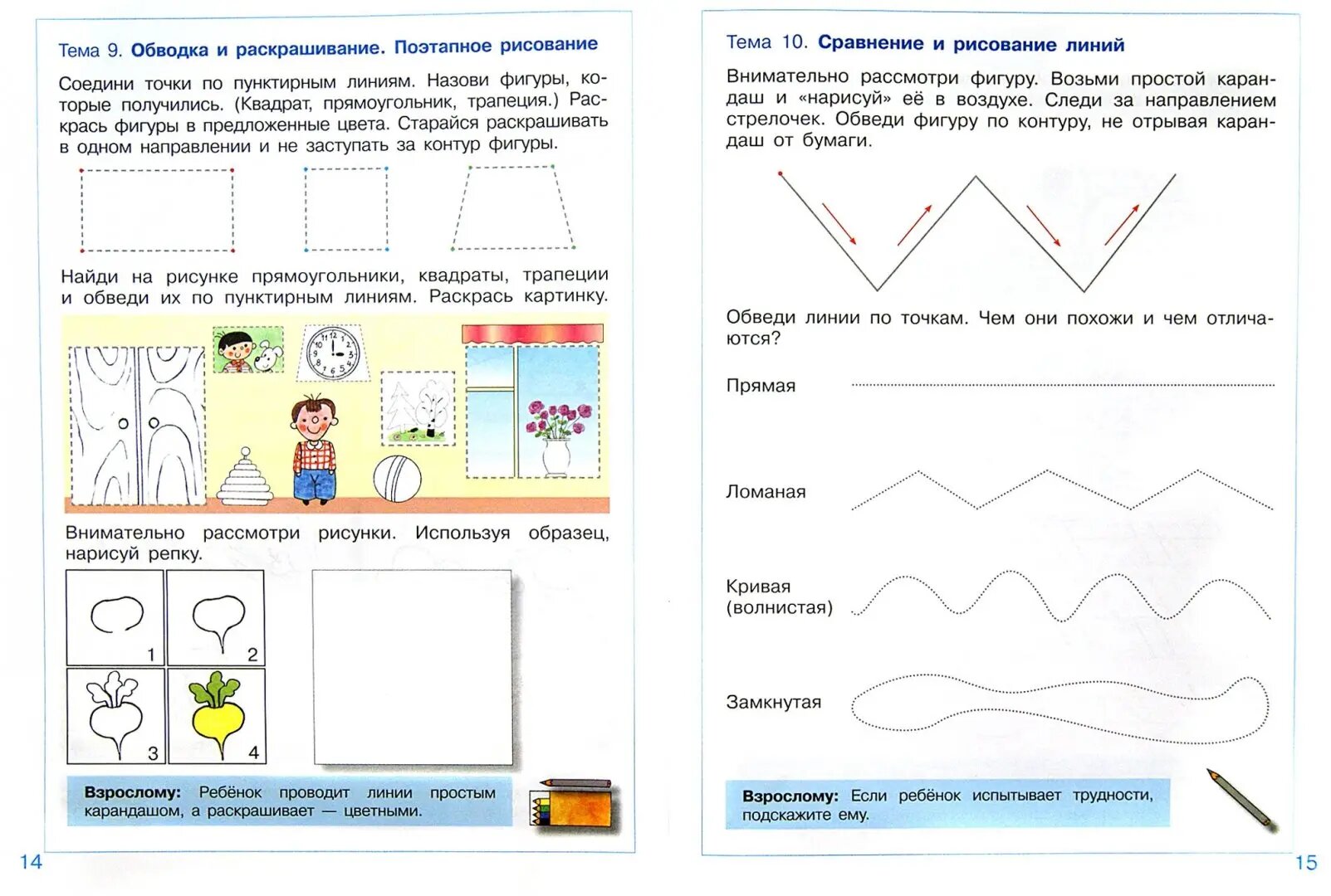 увереннее пользоваться карандашом. Работа с тетрадью способствует развитию мелкой моторики, произвольного внимания, памяти, формирует представления о пространственных отношениях, вырабатывает навыки зрительно-двигательной координации.