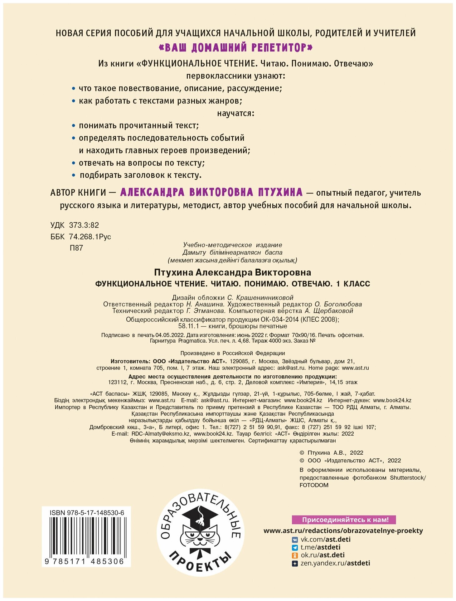 Функциональное чтение Читаю Понимаю Отвечаю 1 класс (Александра Птухина); Эксмо, Образовательные проекты, 2022
