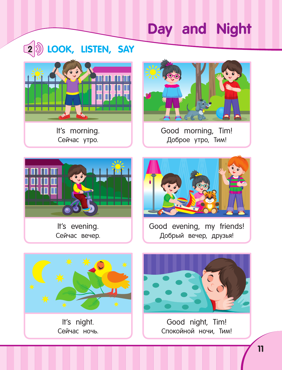 Книжка рекомендована на возраст 5-7 лет. но по содержанию вполне подходит и тем, кто помладше. как только ребенок более-менее уверенно заговорил на родном языке, можно потихоньку вводить английский. По содержанию есть единственное замечание - на вопрос "Как тебя зовут?" предполагается отвечать "Я Вася", что с точки зрения логики вполне допустимо, но, по опыту, переучить потом на "Меня зовут Вася" практически нереально