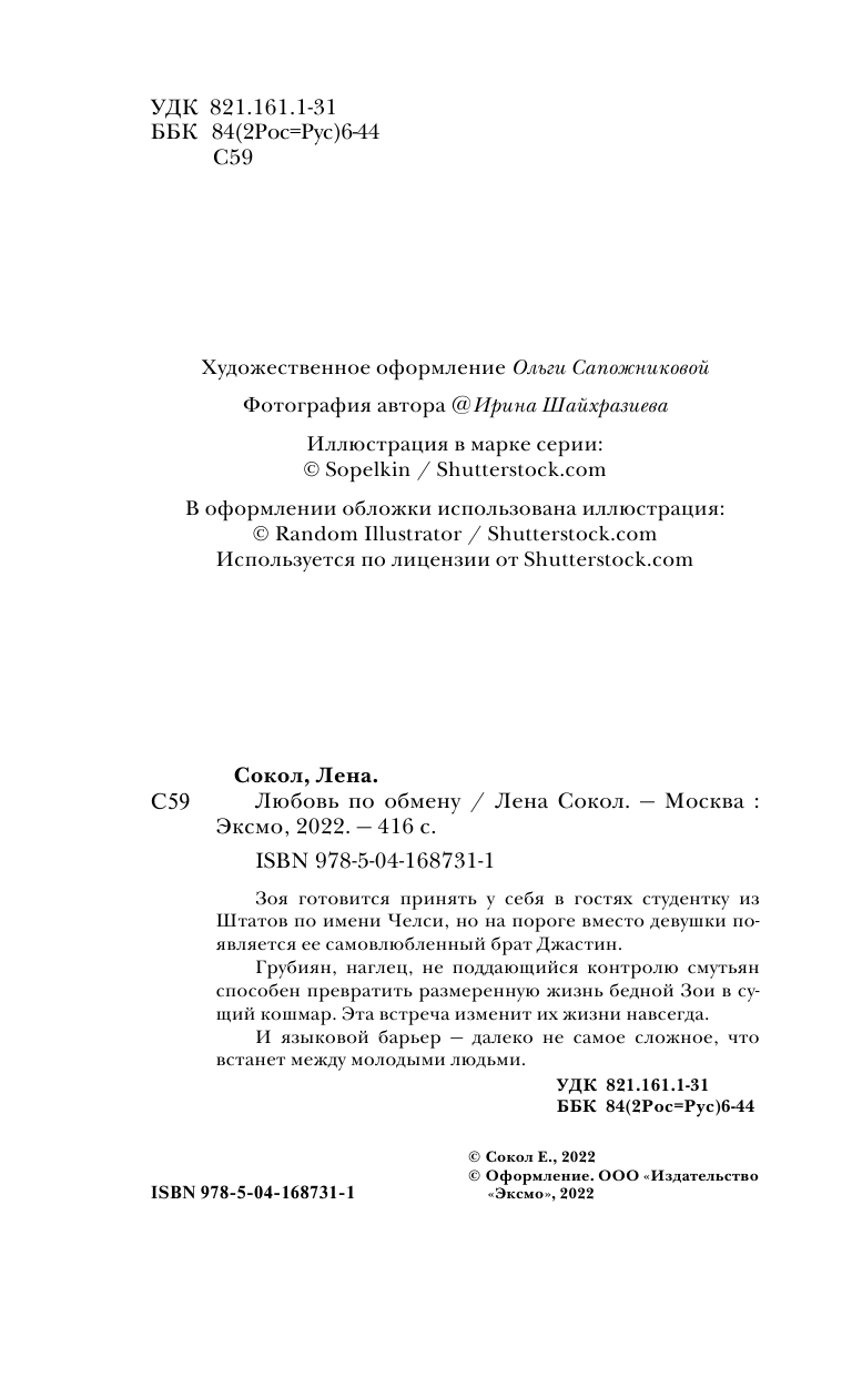 Книга: Любовь по обмену (Лена Сокол); Эксмо, Редакция 1, 2022