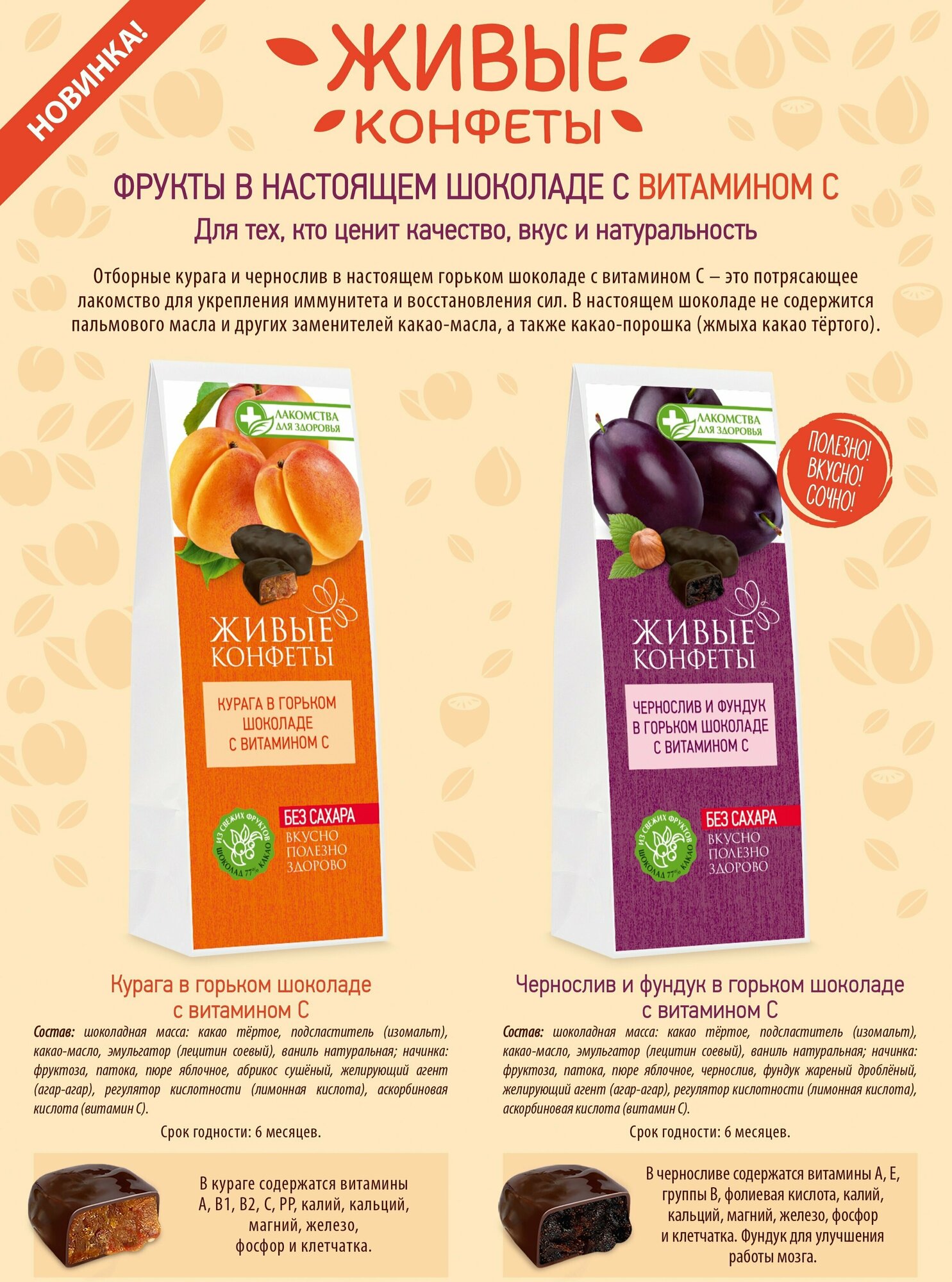 Изделия кондитерские сахаристые, конфеты глазированные горьким шоколадом чернослив и фундук в горьком шоколаде с витамином С.