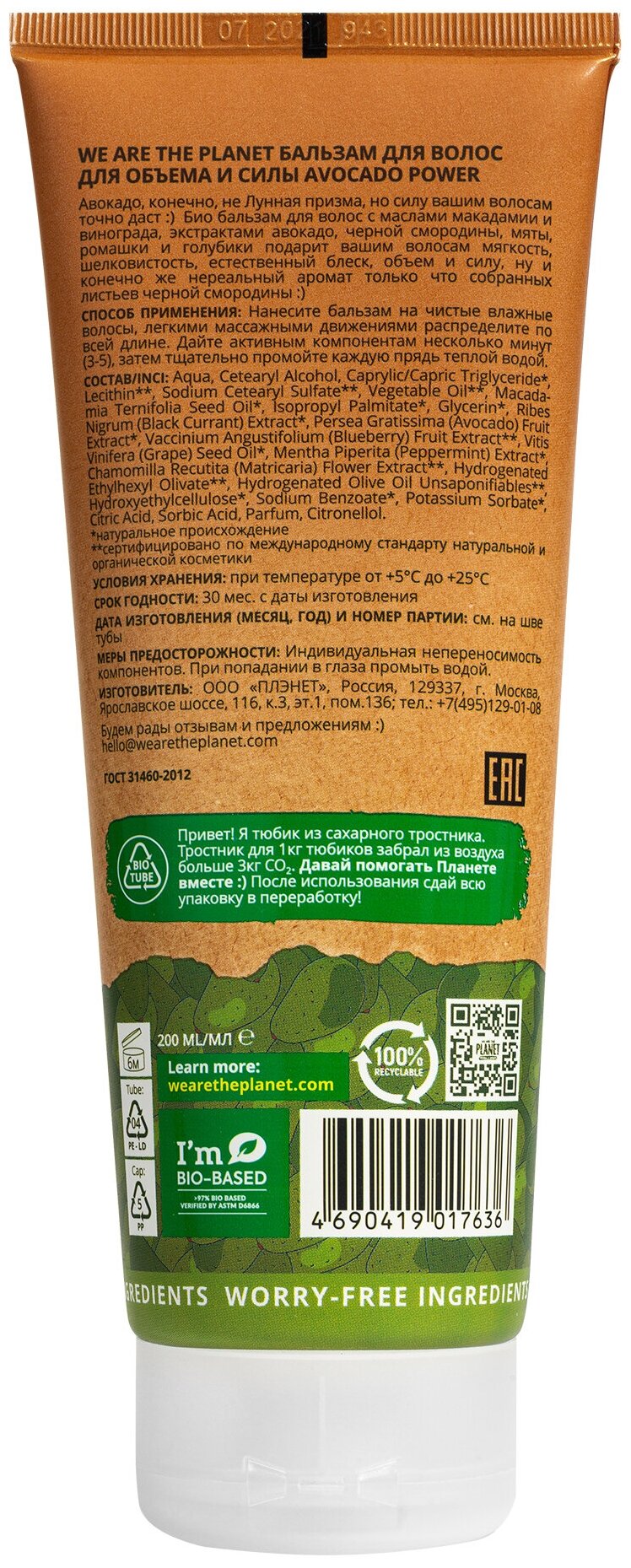 Бальзам для волос We are the planet Avocado Power для объема и силы 200мл