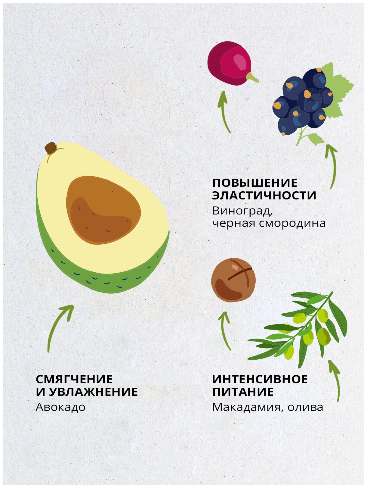 | Состав | Aqua, Cеtearyl Alcohol, Caprylic/Capric Triglyceride*, Lecithin**, Sodium Cetearyl Sulfate**, Vegetable Oil**, Macadamia Ternifolia Seed Oil*, Isopropyl Palmitate*, Glycerin*, Ribes Nigrum (Black Currant) Extract*, Persea Gratissima (Avocado) Fruit Extract*, Vaccinium Angustifolium (Blueberry) Fruit Extract**, Vitis Vinifera (Grapes) Seed Oil*, Mentha Piperita (Peppermint) Extract*, Chamomilla Recutita (Matricaria) Flower Extract**, Hydrogenated Ethylhexyl Olivate**, Hydrogenated Olive Oil Unsaponifiables**, Hydroxyethylcellulose*, Sodium Benzoate*, Potassium Sorbate*, Citric Acid, Sorbic Acid, Parfum, Citronellol. *натуральное происхождение; **сертифицировано по международному стандарту натуральной и органической косметики |