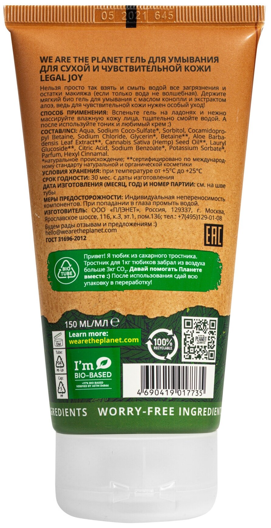 Гель для умывания We are the planet Legal Joy Для сухой и чувствительной кожи 150мл