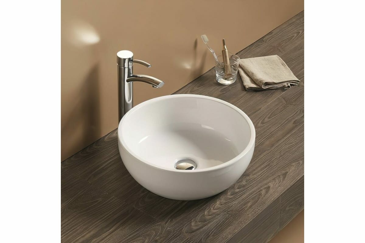 Круглая форма раковины Art&Max оптимальных размеров: шириной 41 см, глубиной 41 см, высотой 14.5 см, способствует комфорту использования и монтажа. Современный стиль, в котором выполнена раковина Art&Max передается во всех элементах данной модели. Материалом, из которого произведена раковина является фаянс, данный материал отличается максимально гладкой поверхностью, и абсолютной гигиениченостью.