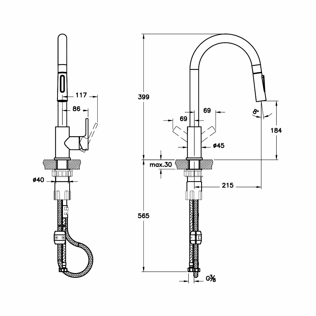| Подключение | с гибкой подводкой 3/8" |